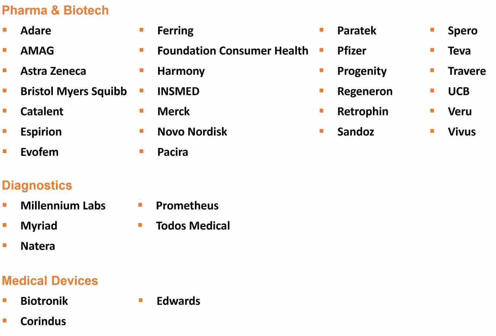 We have experience working with many leading pharmaceutical,